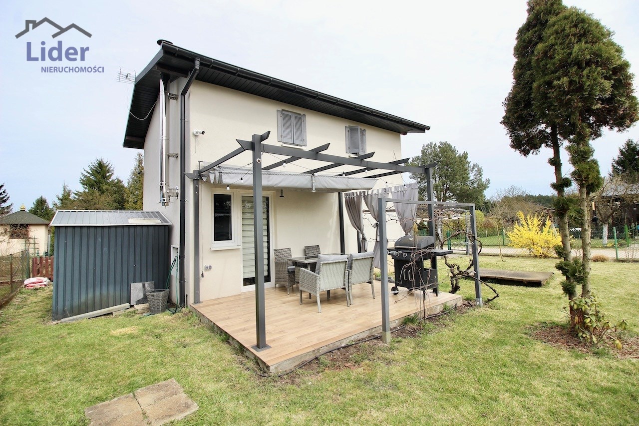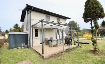 Na działce a o powierzchni 300 m2 znajduje się nowoczesny, piętrowy domek całoroczny o powierzchni ok. 70 m2 wybudowany w 2024 r. z konstrukcji szkieletowej, ocieplony styropianem i wełną mineralną