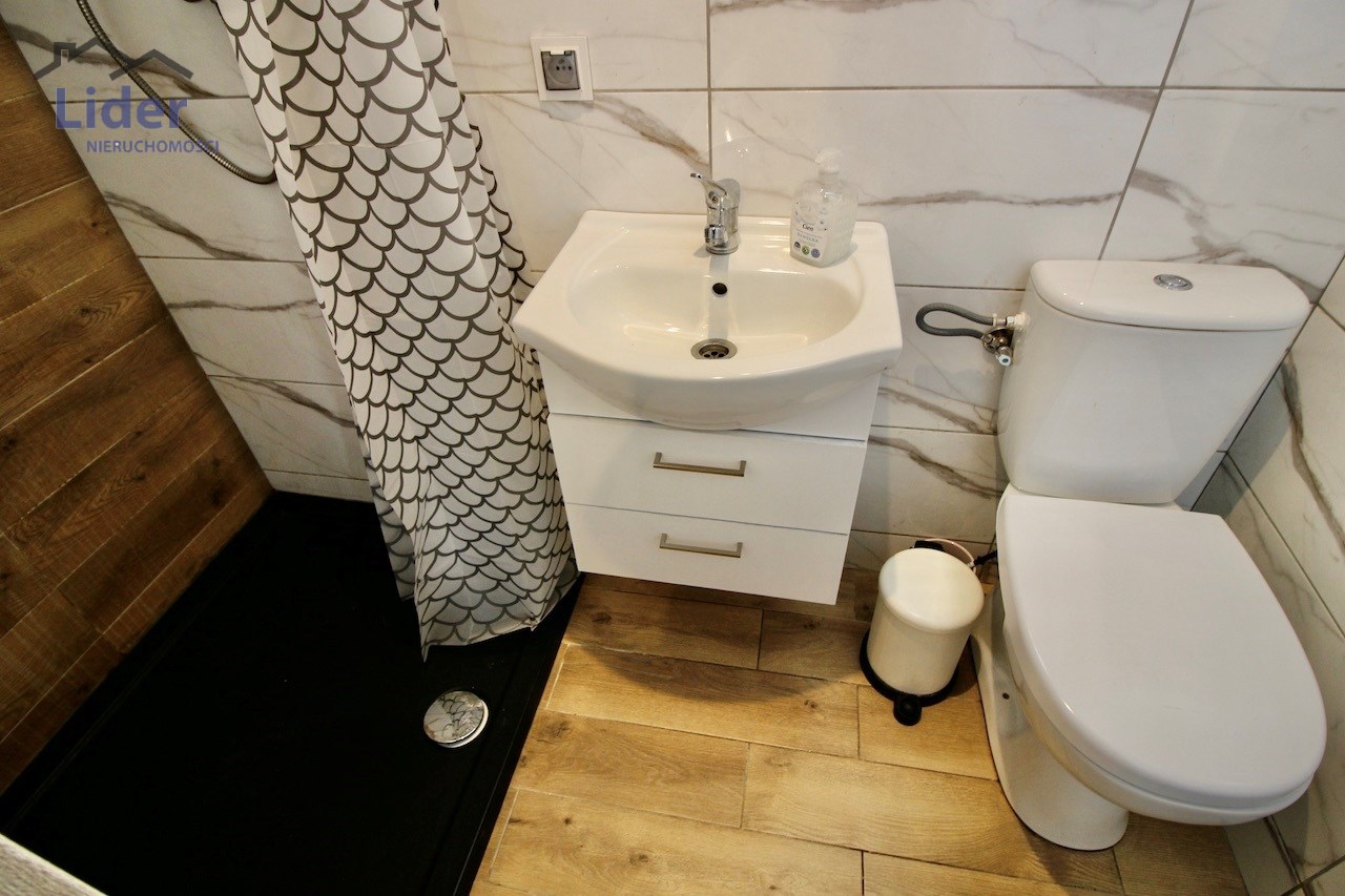 - łazienka z prysznicem i toaletą