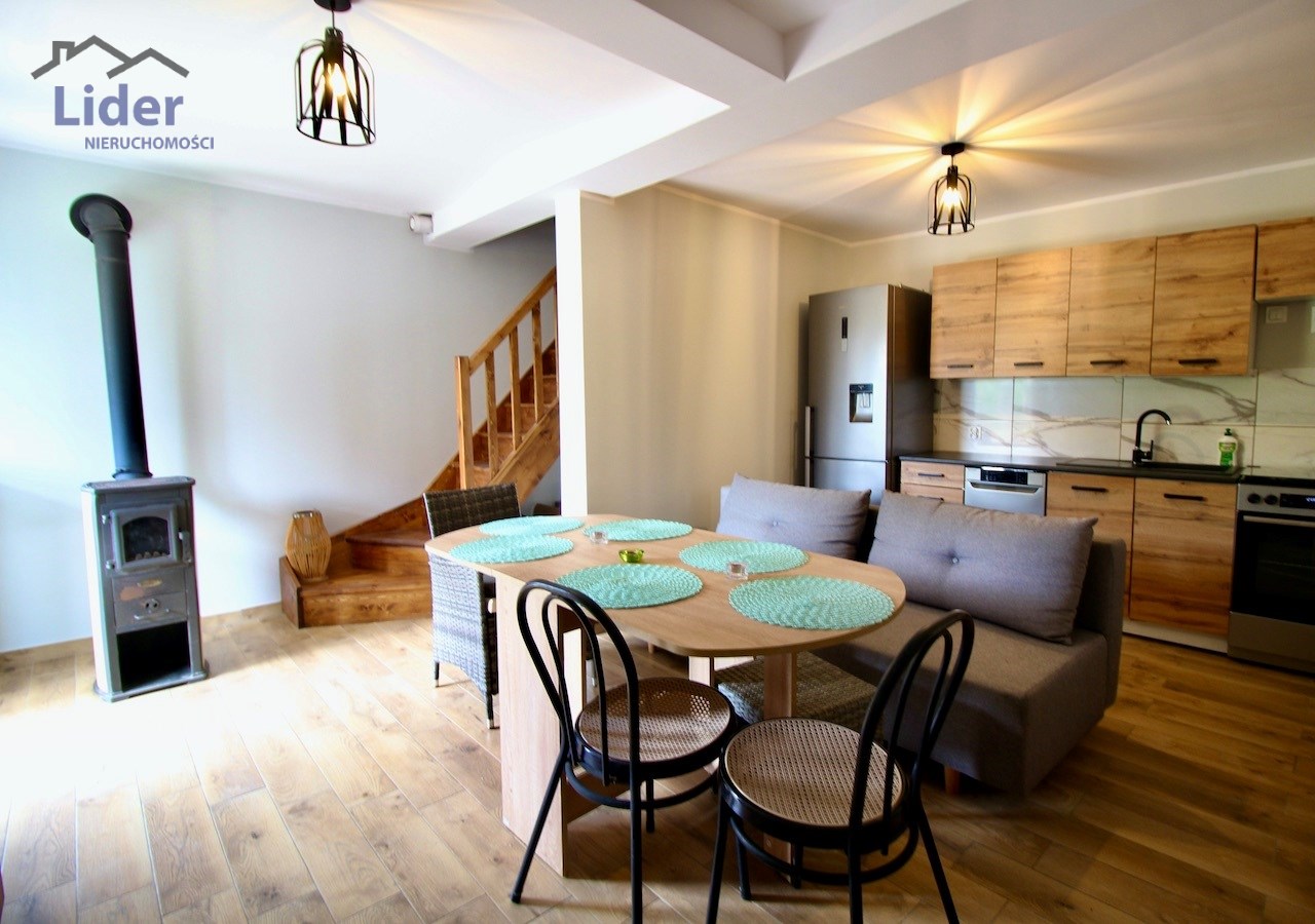 Na parterze znajduje się piecyk opalany drewnem tzw. koza